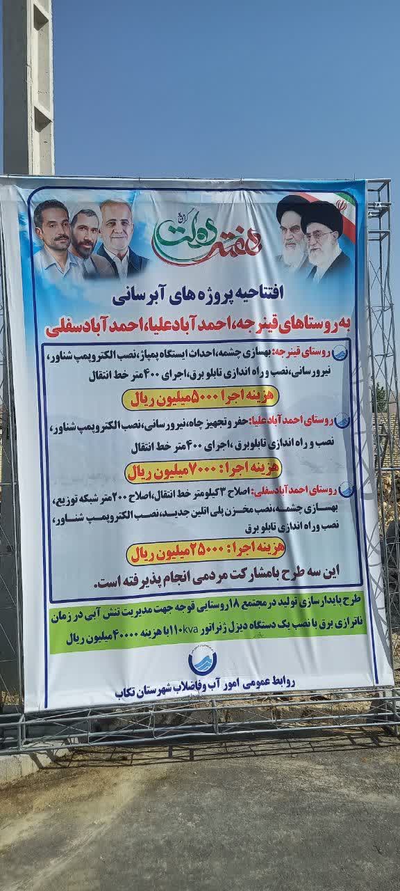 در مراسم افتتاح این پروژهها که با حضور مسئولان شهرستان تکاب برگزار شد، مجدی مدیر امور آب و فاضلاب تکاب با تأکید بر اهمیت توسعه زیرساختهای روستایی گفت: اجرای این طرحها نقش بسزایی در تأمین پایدار آب شرب و ارتقای سطح رفاه عمومی اهالی روستاهای هدف خواهد داشت.