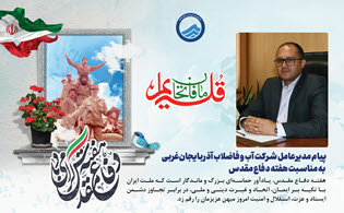 اینجانب ضمن گرامیداشت یاد و خاطره شهدای والامقام و تجلیل از ایثارگران و خانوادههای معزز آنان، فرارسیدن هفته دفاع مقدس را به تمامی همکاران خدوم شرکت آب و فاضلاب آذربایجانغربی و اقشار مختلف مردم شریف استان تبریک عرض میکنم و امیدوارم با الهام از فرهنگ ایثار و مقاومت، در مسیر خدمت به مردم استان بیش از پیش موفق و سربلند باشیم.
